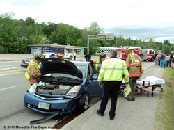 Meredith companies responded to a motor vehicle accident in front of 319 Daniel Webster Highway this afternoon. 14C1 arrived on scene and reported two vehicles were involved. Both vehicles sustained moderate damage in the head on collision. The crew on 14 Engine 1 secured power on both vehicles and contained fluid leaks. Stewarts Ambulance personnel evaluated the occupants of both vehicles. All denied any injury. Companies were on scene for approximately one hour.