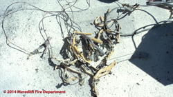 At 11:16 14 Rescue 1 notified the Lakes Region Mutual Aid Communications Center via radio that they were on the scene of a vehicle fire at the Meredith Town Beach on waukewan Street and requested a tone for an Engine company to the scene. 14 Engine 1 responded and arrived at 11:19. Personnel from 14 Rescue 1 had gained access to the trunk of the vehicle and extinguished the fire with an extinguisher prior to arrival. Investigation revealed the vehicle owner had assembled a home made charging system with a portable battery charger and jumper cables to supplement battery power to the vehicle which had a faulty alternator.